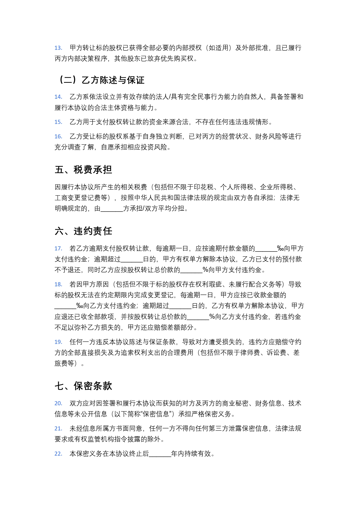 公司普通股权转让协议