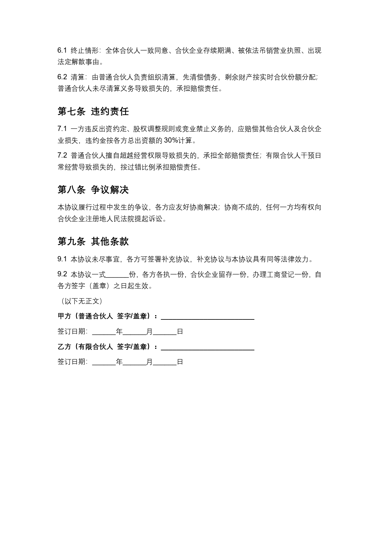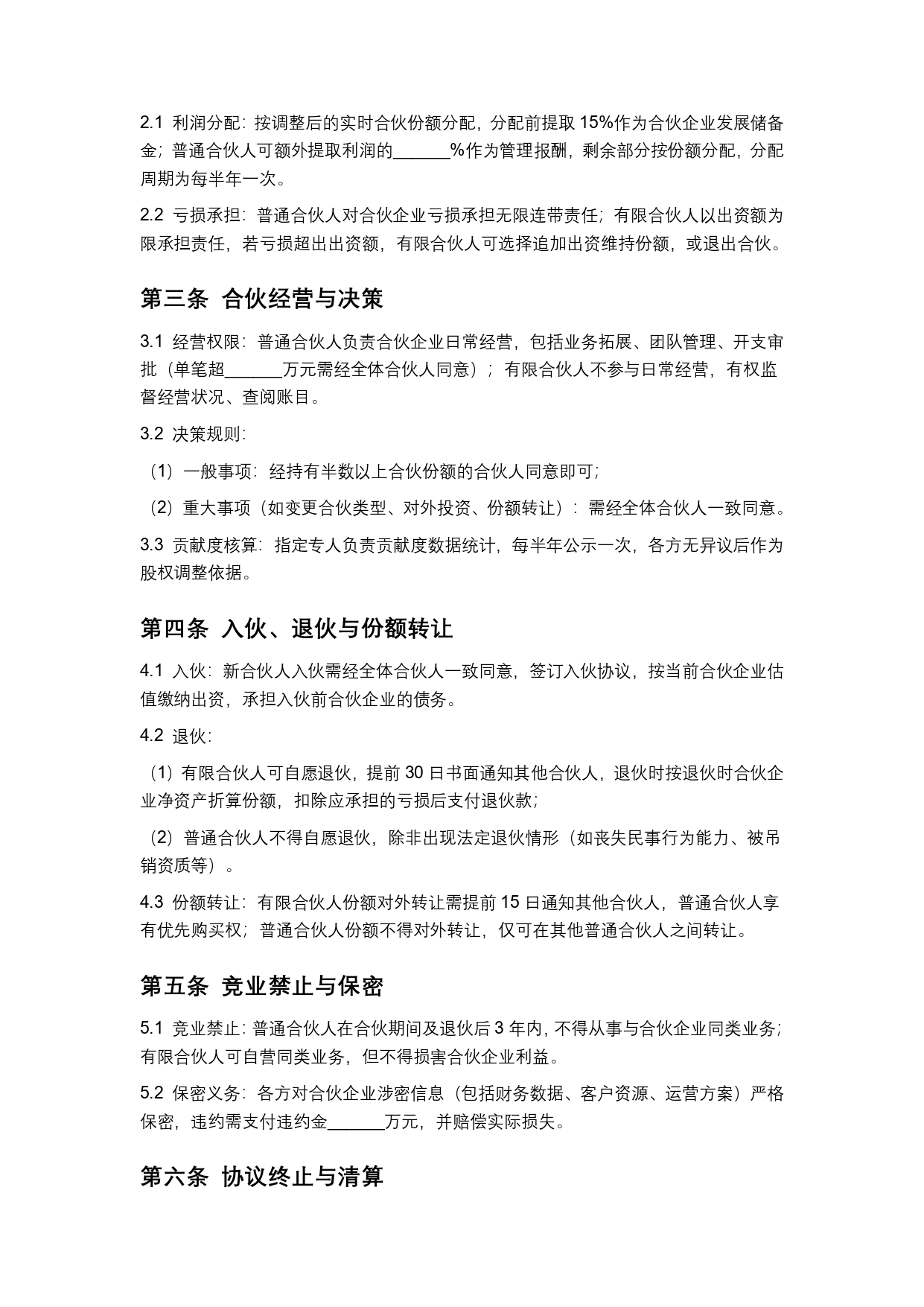 合伙企业股东合作合同