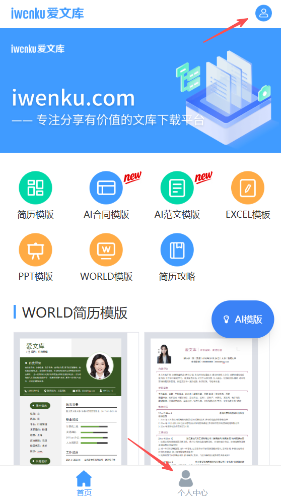 3、点击“AI合同模版”或“AI范文模版”进入模板库页面