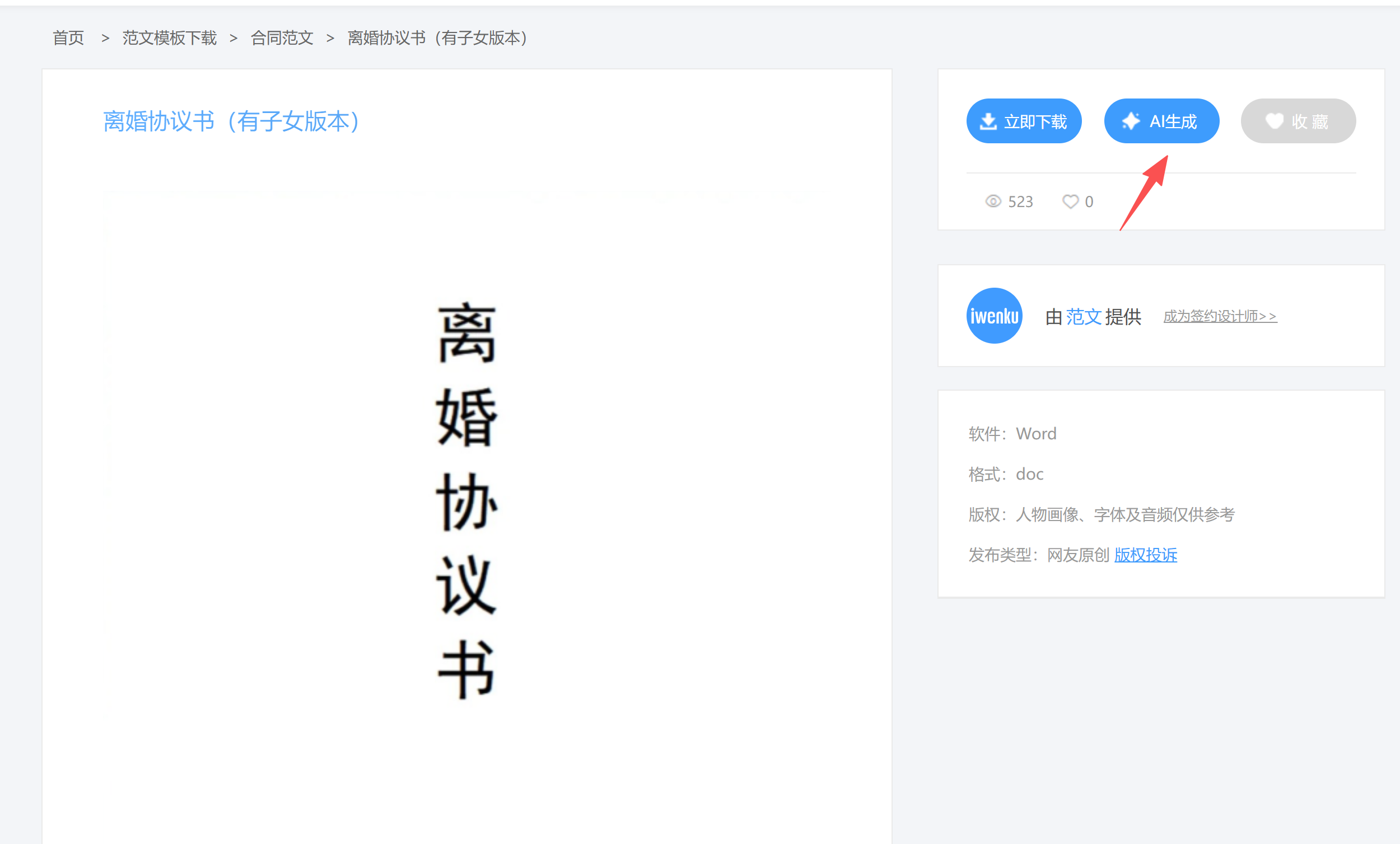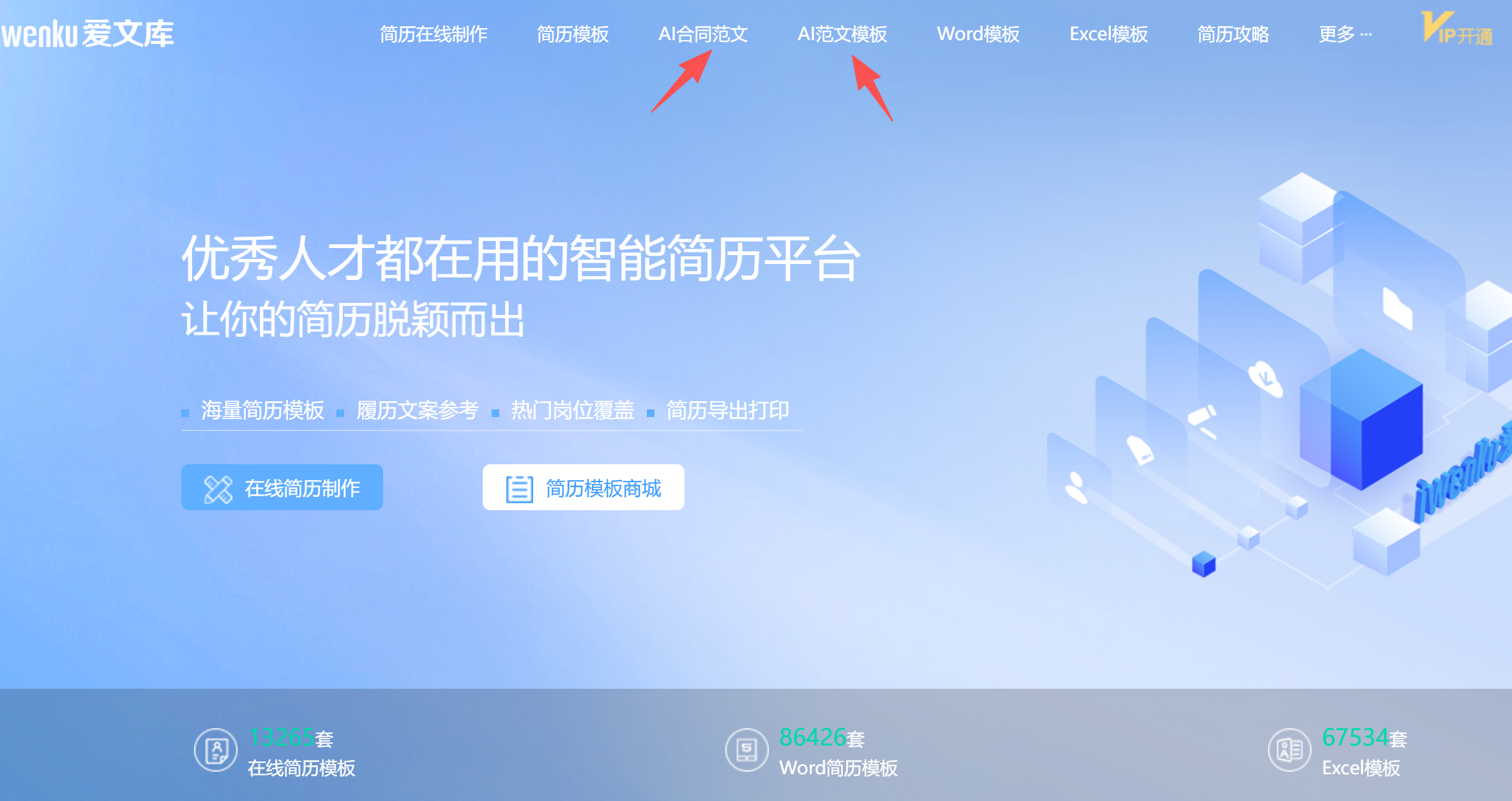 3、点击“AI合同模版”或“AI范文模版”进入模板库页面